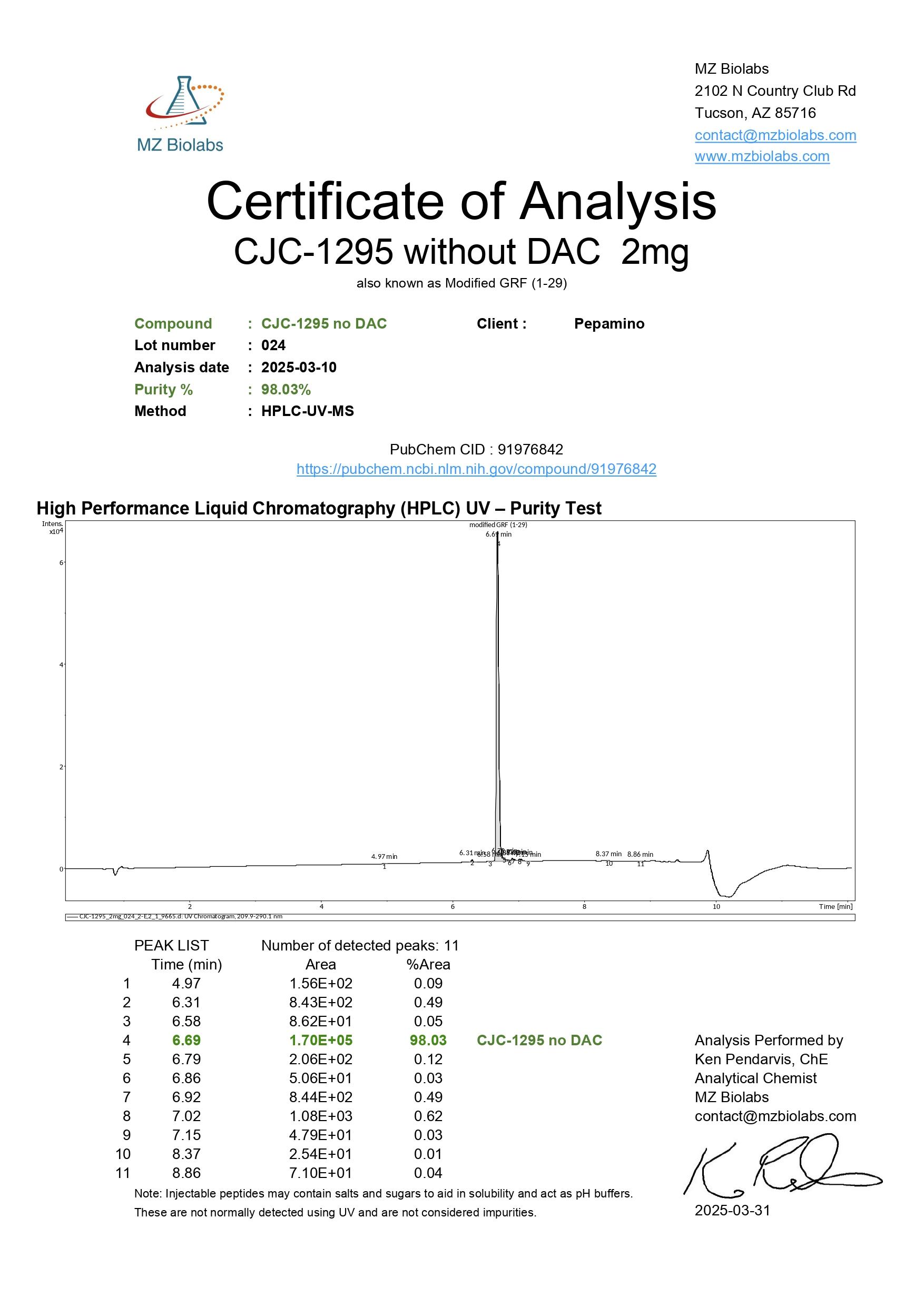 CJC-1295 is a synthetic peptide designed to stimulate the release of growth hormone by acting on the pituitary gland. It is commonly referred to as a growth hormone-releasing hormone (GHRH) analog.