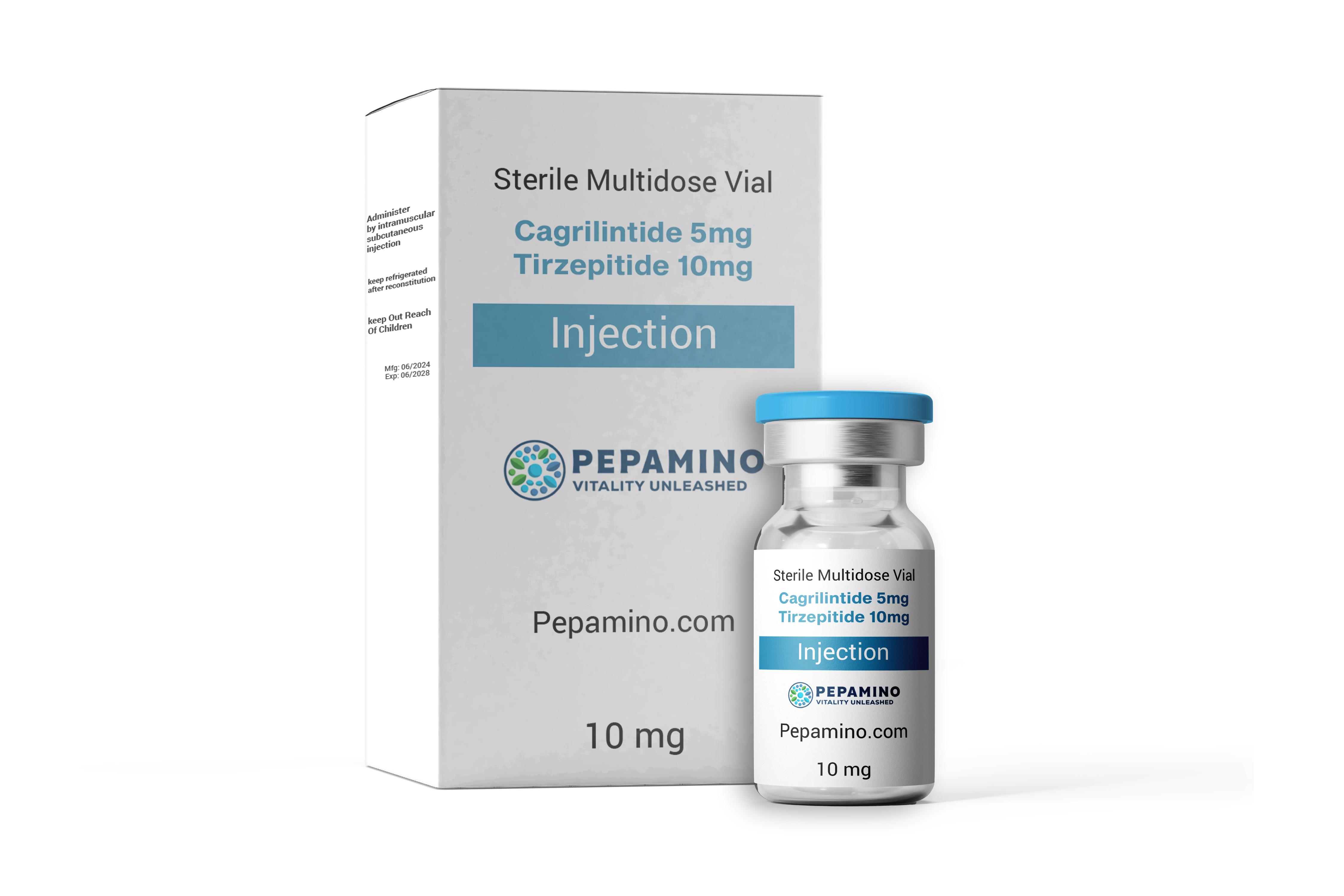 A sterile multidose vial designed for precise dosing, combining Cagrilintide and Tirzepatide to support weight management and metabolic health. Ideal for research purposes, this potent formulation helps explore advancements in GLP-1 receptor-based treatments.